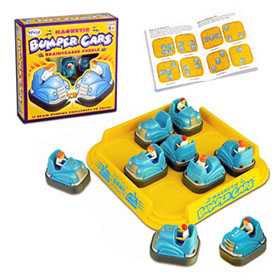 In this game you need to place all 9 bumper cars on the track without allowing them to bump each other - hidden magnets make it tougher than it sounds.  It encourages learning, creativity, social interaction, and good old basic fun. It includes a magnetic ''track'' and 9 bumper cars with embedded magnets, plus challenge booklet with 12 different puzzles to solve.
