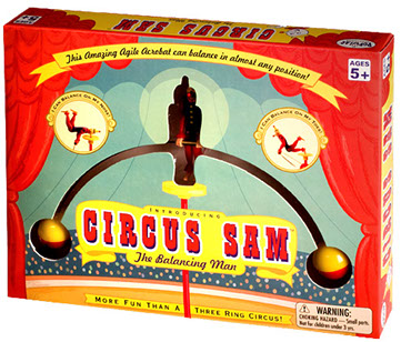 Unlike other balancing toys, SAM's arms, legs and balancing pole all move, allowing him to balance in all sorts of gravity-defying positions. He can balance on his head, heels, toes and even his nose! Once Circus Sam is balanced, give him a little turn and he will bob up and does as he goes round and round. This circus act is sure to delight all those who see it...so go on with the show! The game includes 1 Circus Sam, 1 Platform, 1 Pole, 1 Base and an Instructional booklet.