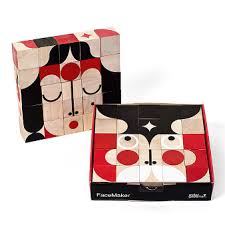 Each block of this game has dedicated graphics perfect for illustrating eyes, noses and mouths. Both Children and adults will delight in creating an array of characters and faces and from the multi-faceted wooden blocks. This Deluxe set comes in a black wooden frame that houses the blocks while you play. Once your creation is ready you can hang it on your wall.