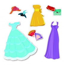 A girls game that develops imagination, hand-eye coordination and the ability to distinguish and match clothes and accessories to their appropriate location.