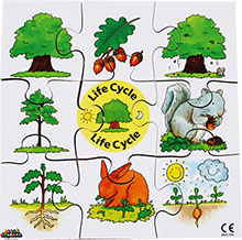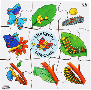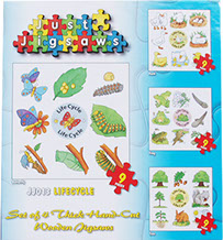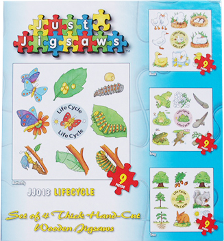 This set includes butterfly, duck, frog and tree. It follows their natural life cycle from beginning to end.