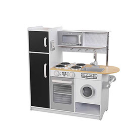 Our innovative KidKraft Pepperpot Kitchen will get young chefs interacting and having fun. With realistic burners, oven knobs that click and turn, appliance doors that open and a chalkboard on the front of the refrigerator, kids will have endless hours of fun letting their imaginations unfold. The sturdy design will ensure that it remains a vibrant part of playtime for years to come.