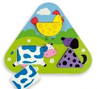 A triangular shaped puzzle with printed background according to the drawing of the piece to fit.