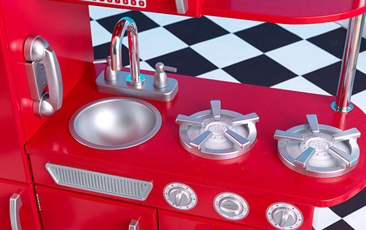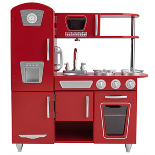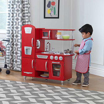 Young chefs are sure to love cooking up fun with our adorable KidKraft Red Vintage Play Kitchen! This vintage play kitchen has doors that open and close, knobs that click and turn and plenty of convenient storage space.